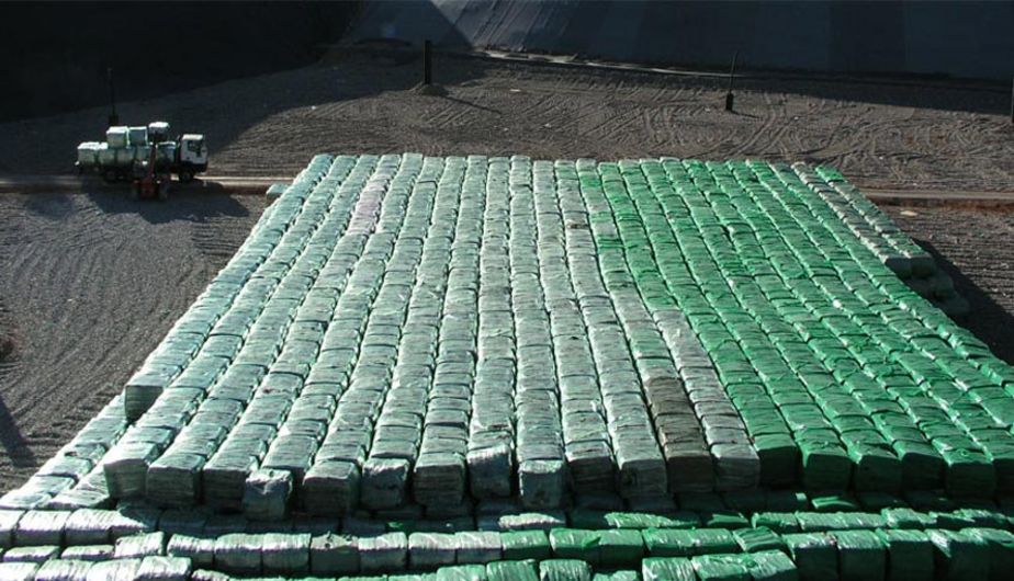 Während der Müllballen aus der Ballenpresse gefördert wird, werden in bestimmten Abständen weitere Umreifungen angelegt.